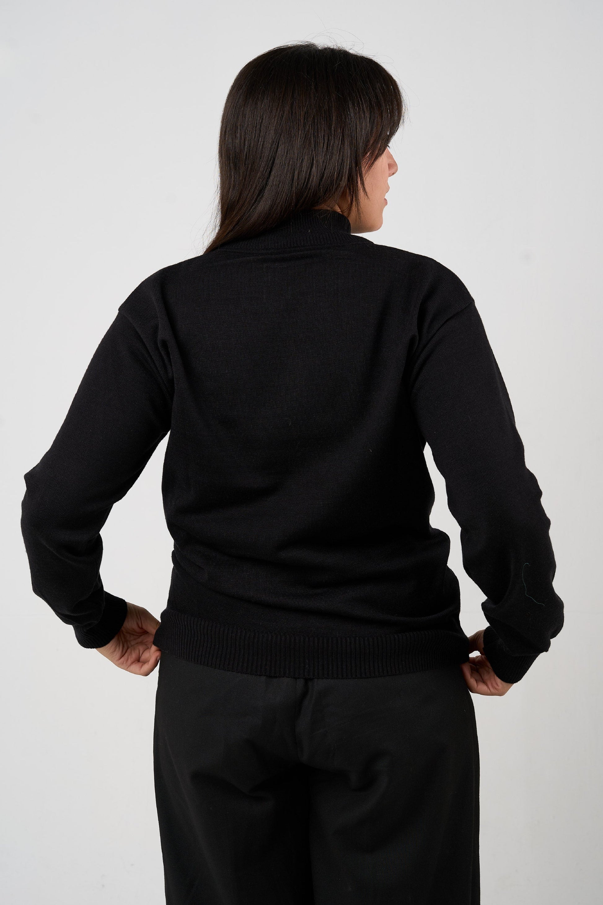 A refined knit designed for effortless layering. This black mock neck sweater offers warmth and structure without bulk, making it ideal for transitional weather and everyday wear. The ribbed neckline, cuffs, and hem provide a clean finish while maintaining comfort and flexibility.