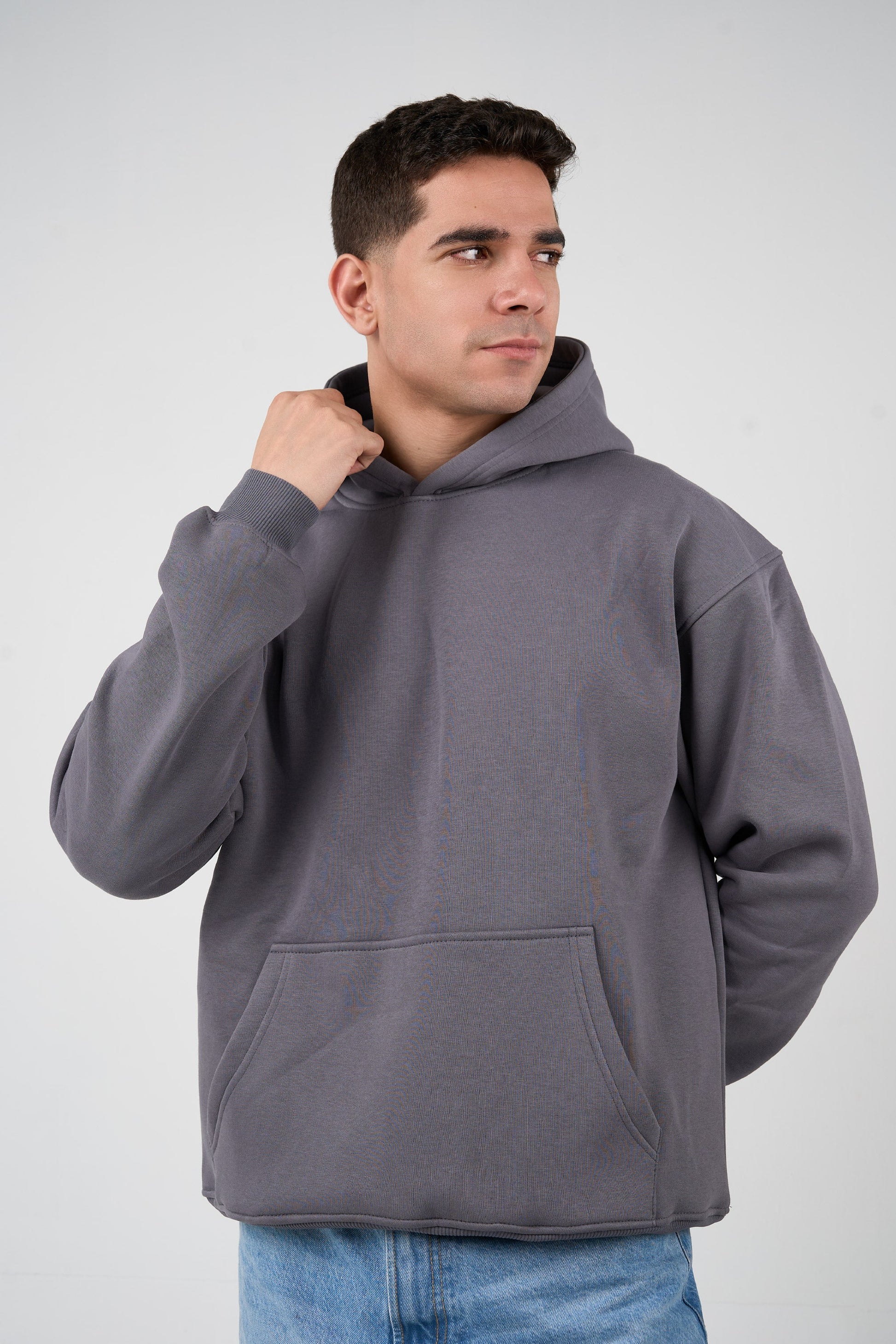 Minimal yet striking, this graphite-tone hoodie combines a modern relaxed fit with plush melton cotton. Soft to the touch and substantial in weight, it offers a cozy, structured layer perfect for cooler days, layering, or casual elevated outfits.